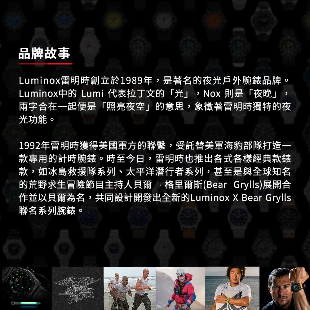 革龜系列是 Luminox 普及性最高且廣受歡迎的戶外運動腕錶,嚴謹的瑞士製錶工藝與品牌經典的 LLT 發光技術,以更輕盈、更低負擔的方式帶到你的生活中。