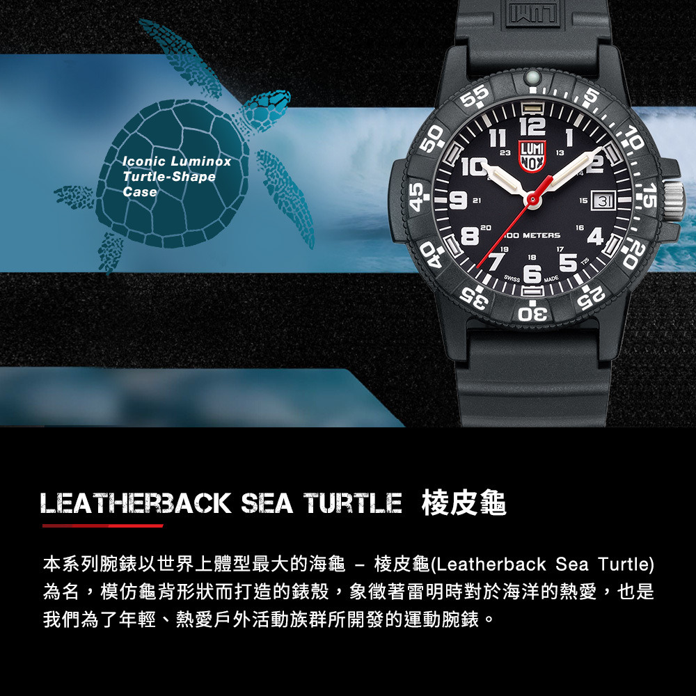 革龜(Leatherback Sea Turtle)是地球上體型最大的海龜,每年橫越數千海里穿梭於大西洋與太平洋之間,堪稱海洋中最堅韌的遠征者。Luminox 革龜系列正是以這種傳奇生物為靈感,打造出兼具耐用性與可靠性的探險腕錶。